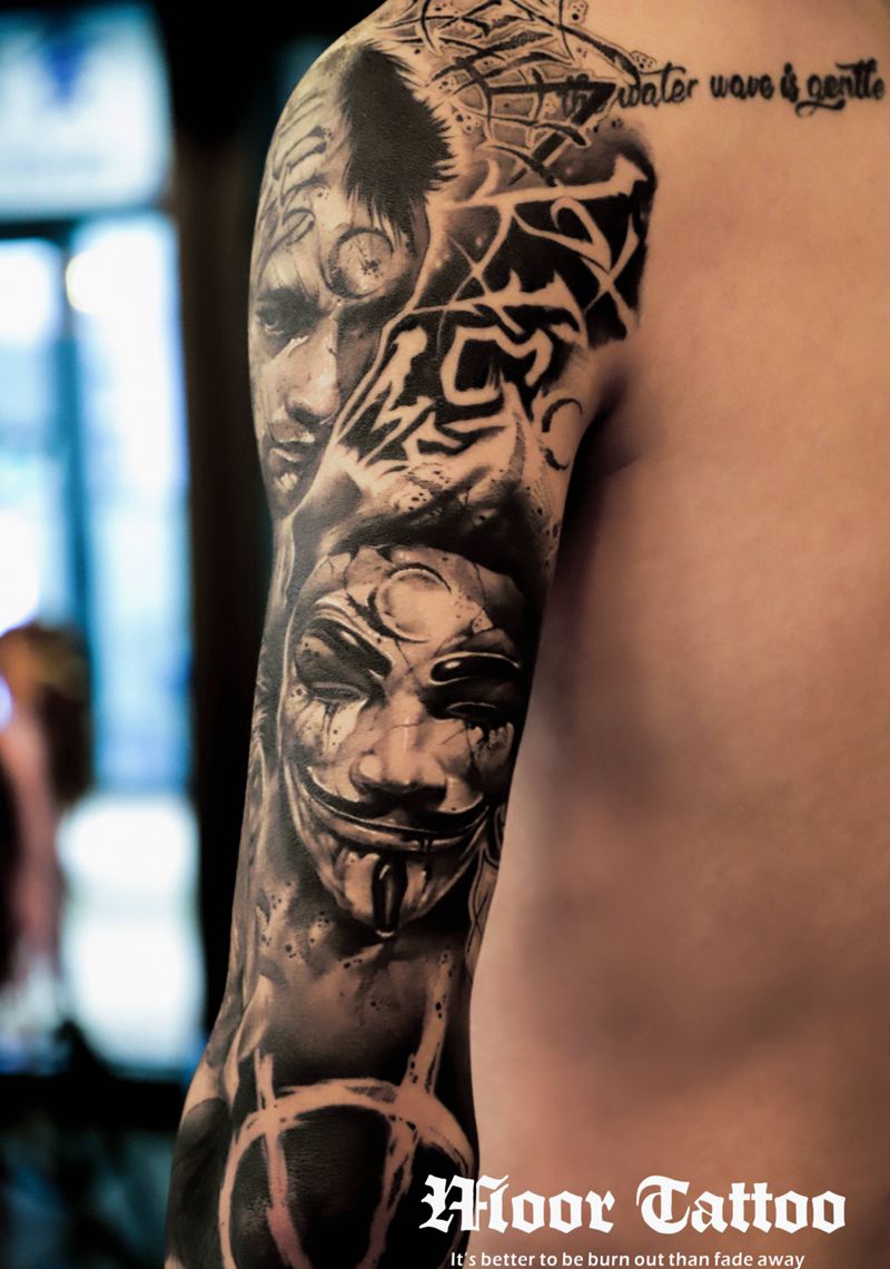 当前位置: 首页 >山东省青岛市纹身店-荒野刺青纹身图案>欧美黑灰写实花臂纹身图片_手臂欧美写实纹身图案