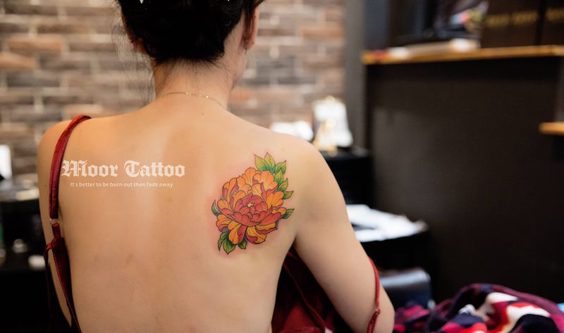 当前位置: 首页 >山东省青岛市纹身店-荒野刺青纹身图案>牡丹花纹身图片_背部Old SchoolNew School纹身图案