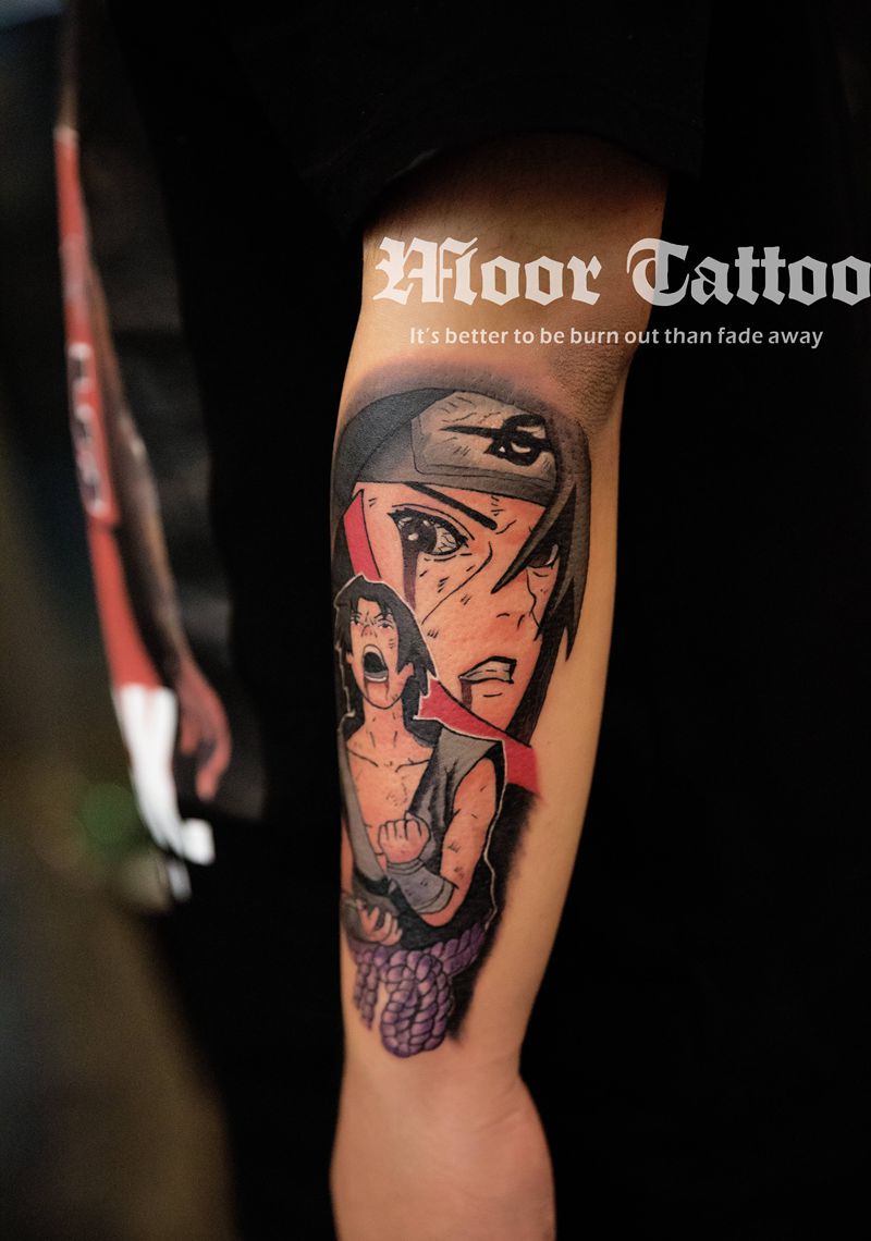 当前位置: 首页 >山东省青岛市纹身店-荒野刺青纹身图案>宇智波鼬纹身图片_手臂肩部New School欧美写实纹身图案