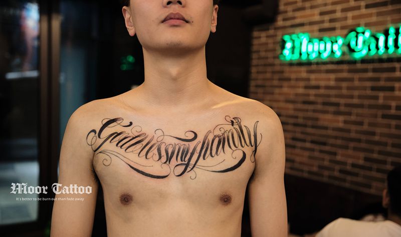 其卡诺花胸纹身图片_胸部花体字纹身图案