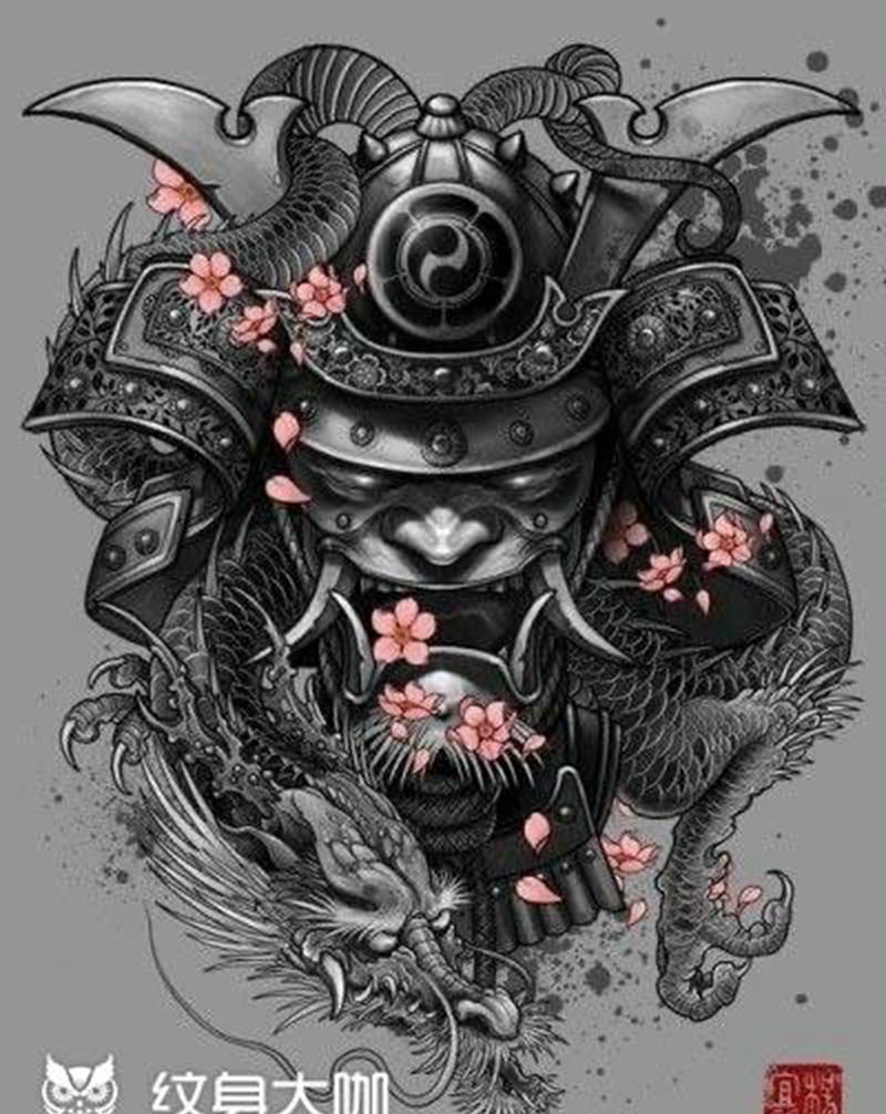 分享一张鬼武士手稿纹身图片_新传统纹身图案