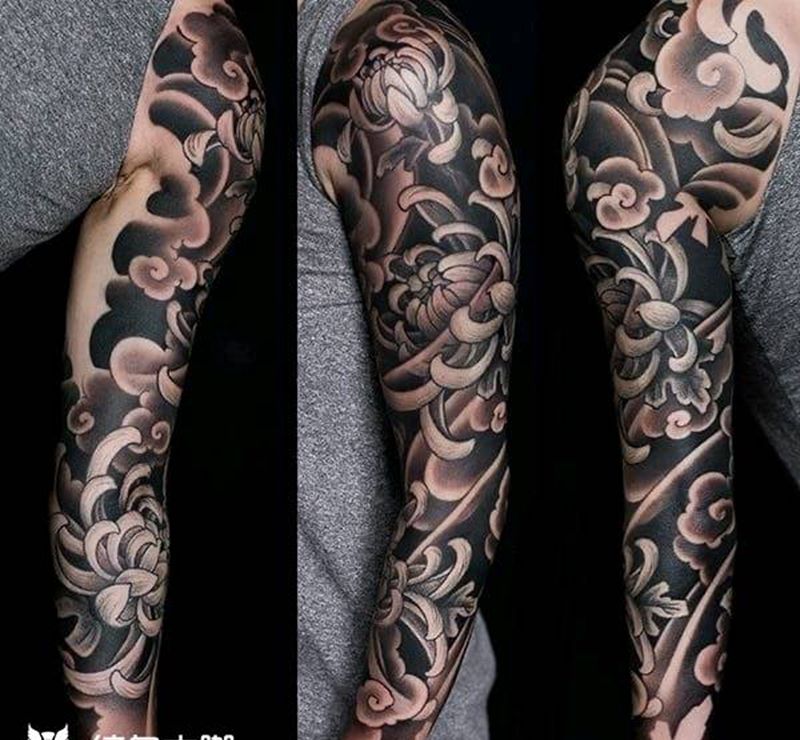 当前位置: 首页 >山东省青岛市纹身店-SorryMom疼痛研究所纹身图案>传统花臂,菊花题材纹身图片_手臂老传统纹身图案