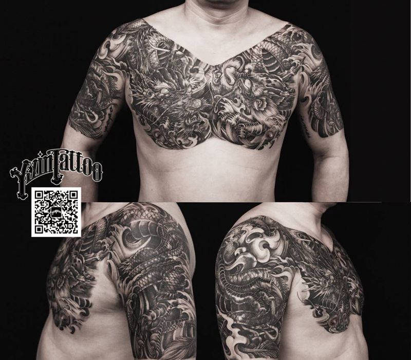 黑灰满背纹身图案