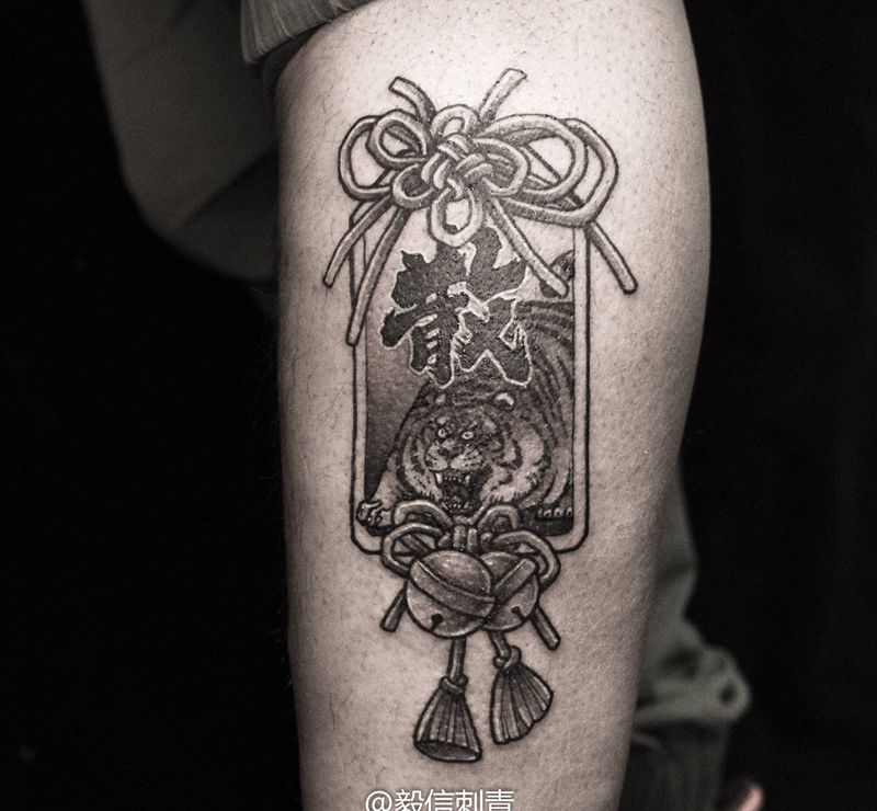 厄运退散御守纹身图片_腿部御守老虎纹身图案