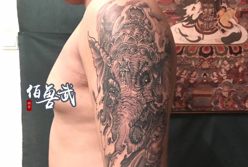 当前位置: 首页 >山东省青岛市纹身店-佰兽武刺青纹身图案>象神纹身图片_手臂新传统纹身图案