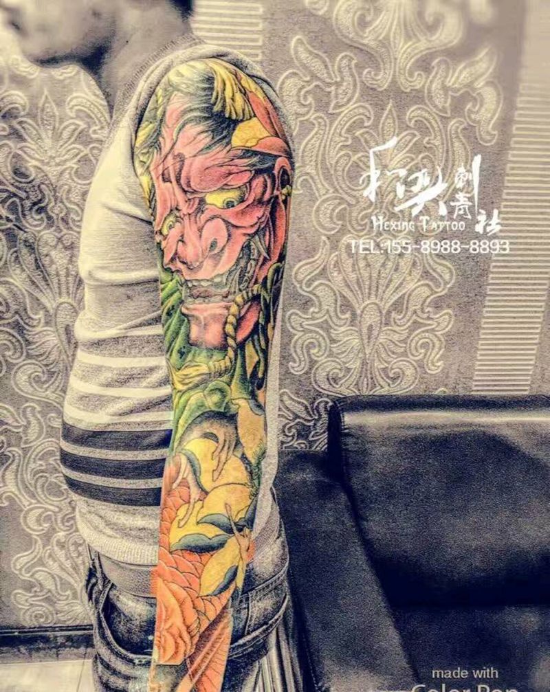 当前位置: 首页 >山东省青岛市纹身店-*和興刺青社*纹身图案>传统风格花臂(重彩)纹身图片_手臂传统人物宗教原创成品纹身图案