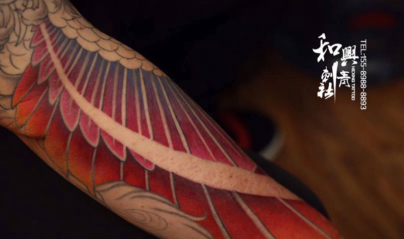 《凤翅》纹身图片_手臂背部新传统老传统凤凰翅膀重彩纹身图案