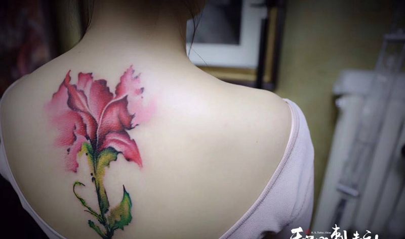 《陌上花开》纹身图片_背部手臂水彩新传统花女性脊柱纹身图案