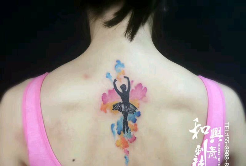 芭蕾女孩纹身图片_背部欧美清新人物原创成品纹身图案