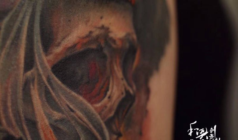 《重生的世界》2018长春黥TATTOO欧美彩色小组①等奖作品纹身图片_手臂欧美写实骷髅纹身图案