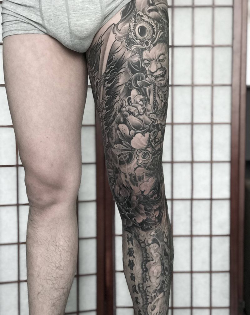 新传统花腿纹身图片_腿部新传统纹身图案