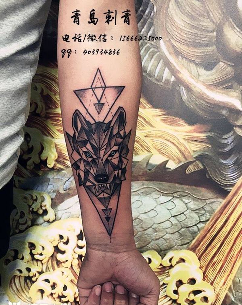 当前位置: 首页 >山东省青岛市纹身店-八玖刺青纹身图案>几何线条狼头纹身图片