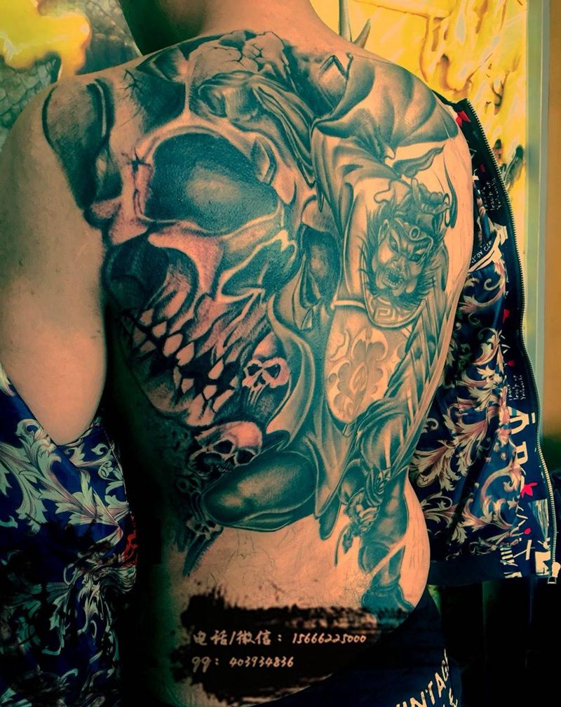 黑灰满背纹身图案