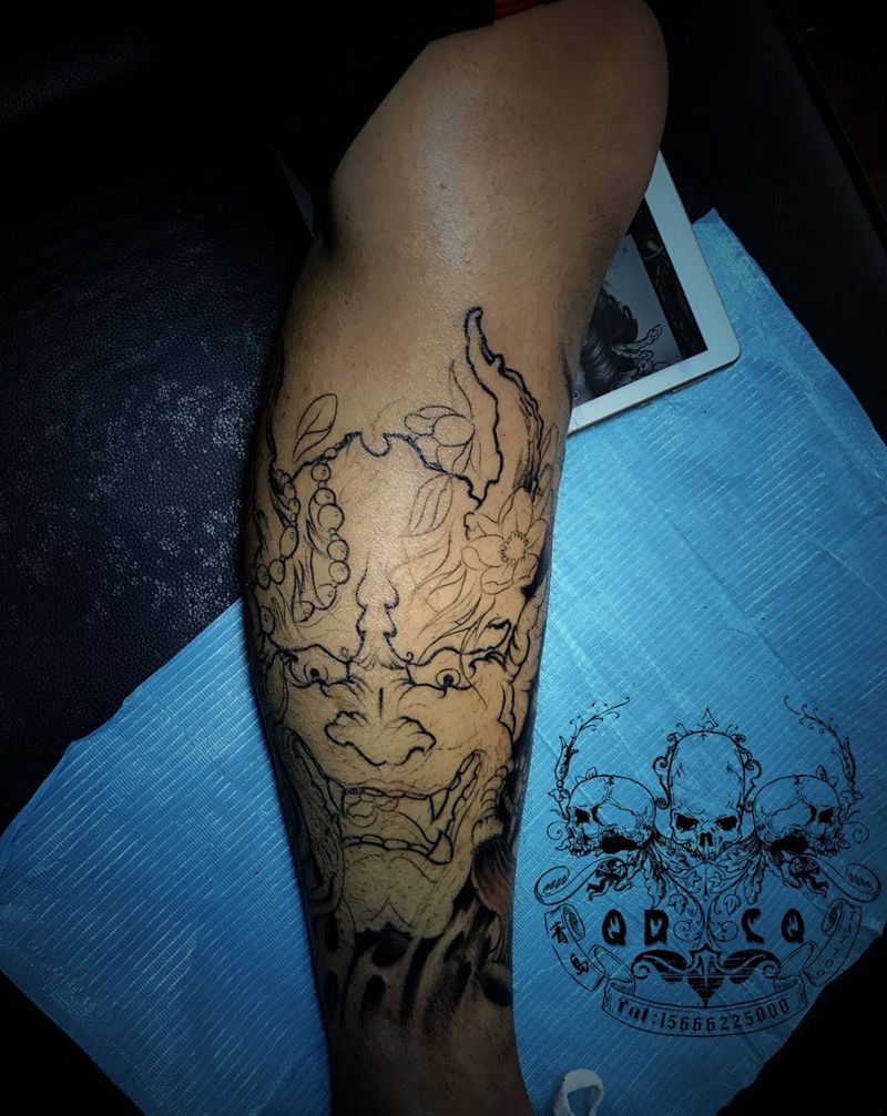 当前位置: 首页 >山东省青岛市纹身店-八玖刺青纹身图案>包小腿,未完纹身图片