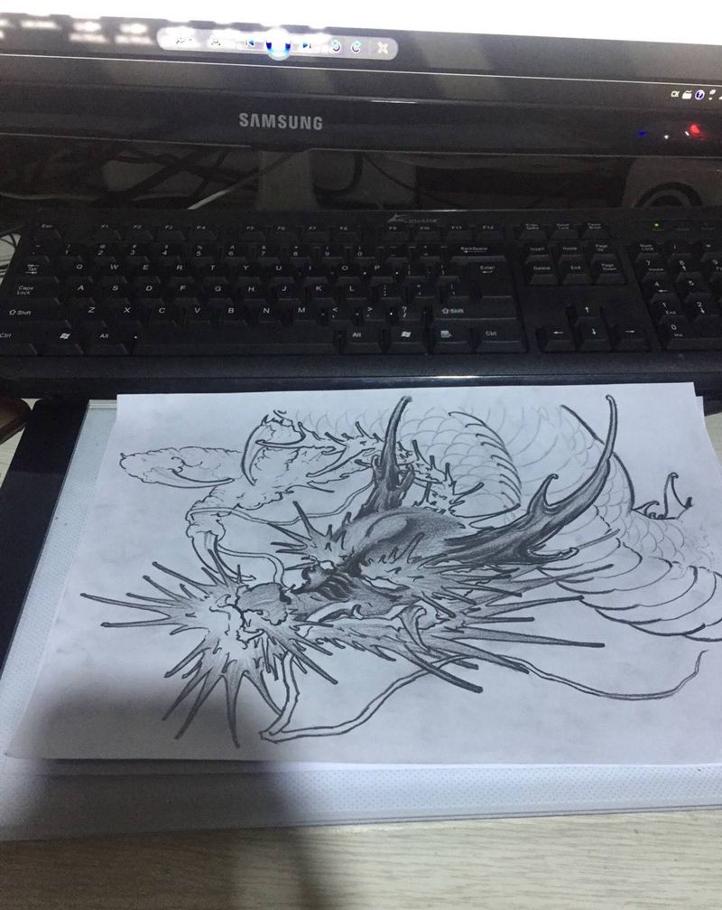 • T网红王老大花腿龙纹身图片_腿部新传统纹身图案
