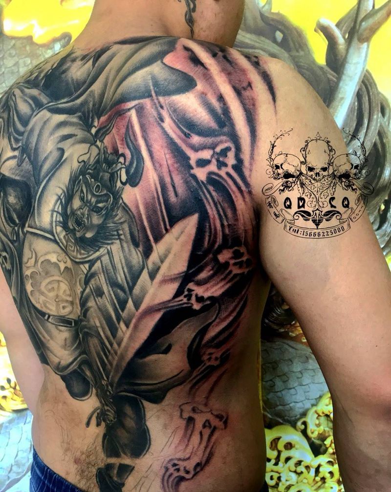 当前位置: 首页 >山东省青岛市纹身店-八玖刺青纹身图案>满背钟馗下次继续纹身图片