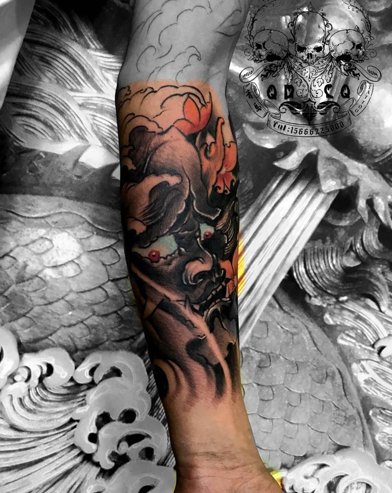 当前位置: 首页 >山东省青岛市纹身店-八玖刺青纹身图案>花臂,遮盖作品,未完待续纹身图片