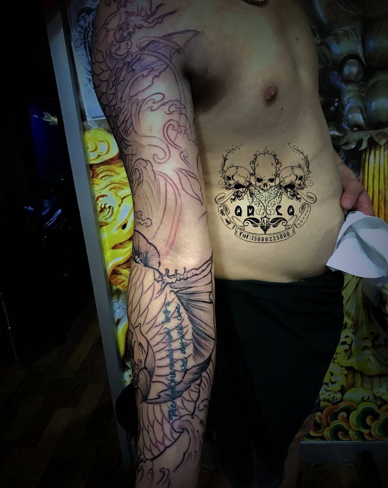当前位置: 首页 >山东省青岛市纹身店-八玖刺青纹身图案>鲤鱼花臂纹身图片