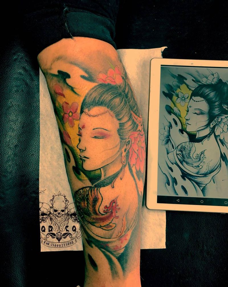当前位置: 首页 >山东省青岛市纹身店-八玖刺青纹身图案>般若艺妓包小腿,耗时10小时纹身图片
