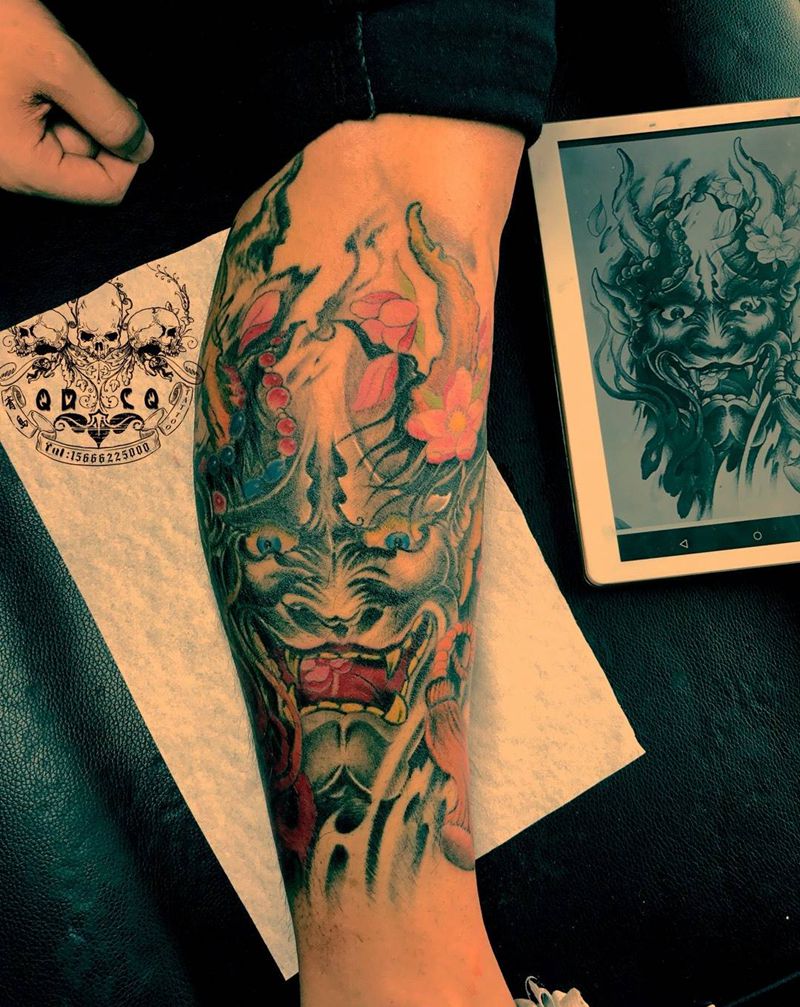 当前位置: 首页 >山东省青岛市纹身店-八玖刺青纹身图案>般若艺妓包小腿,耗时10小时纹身图片