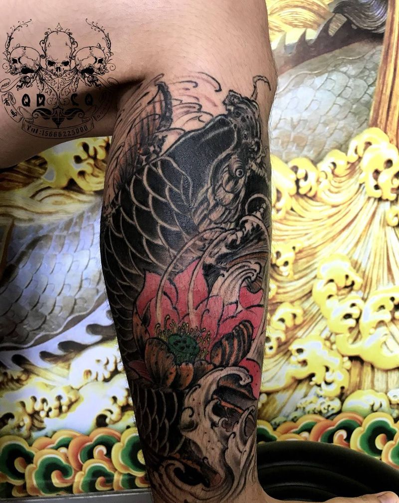 当前位置: 首页 >山东省青岛市纹身店-八玖刺青纹身图案>鲤鱼包小腿纹身图片
