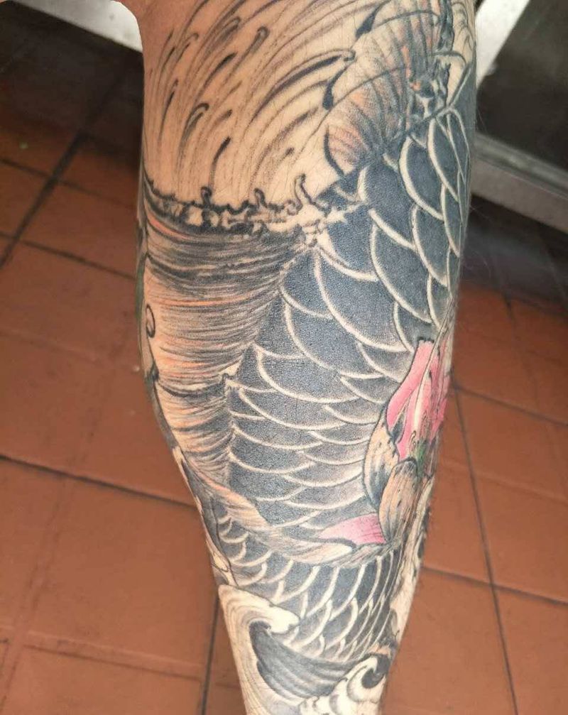 • T网红王老大花腿龙纹身图片_腿部新传统纹身图案