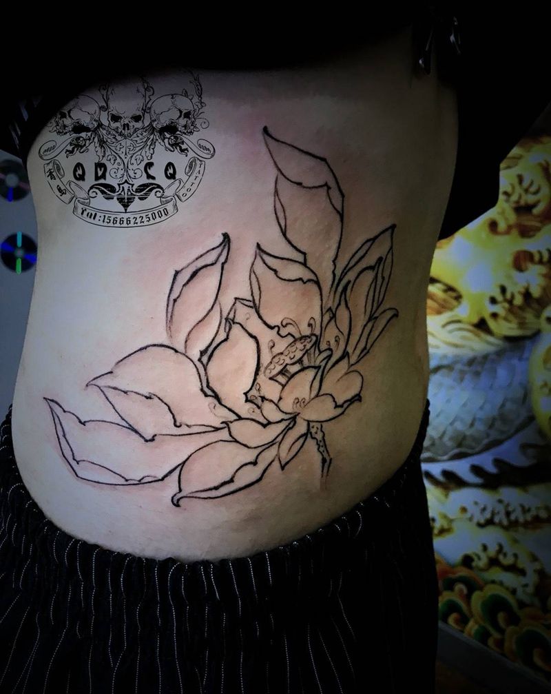 • 时尚性感的腹部莲花纹身图案