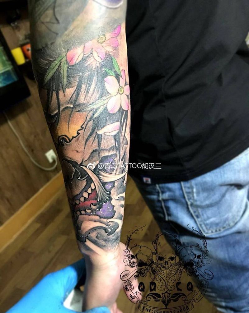 当前位置: 首页 >山东省青岛市纹身店-八玖刺青纹身图案>般若接花臂 下次继续。大臂非本店纹身图片