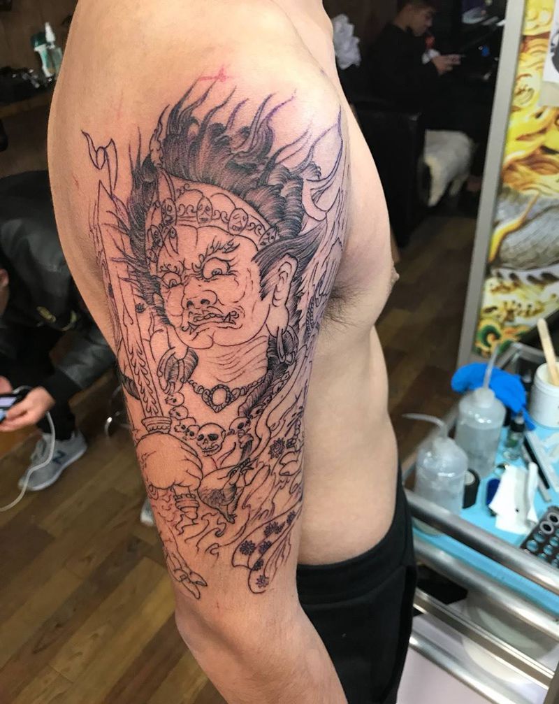 当前位置: 首页 >山东省青岛市纹身店-八玖刺青纹身图案>大黑天线条。纹身图片