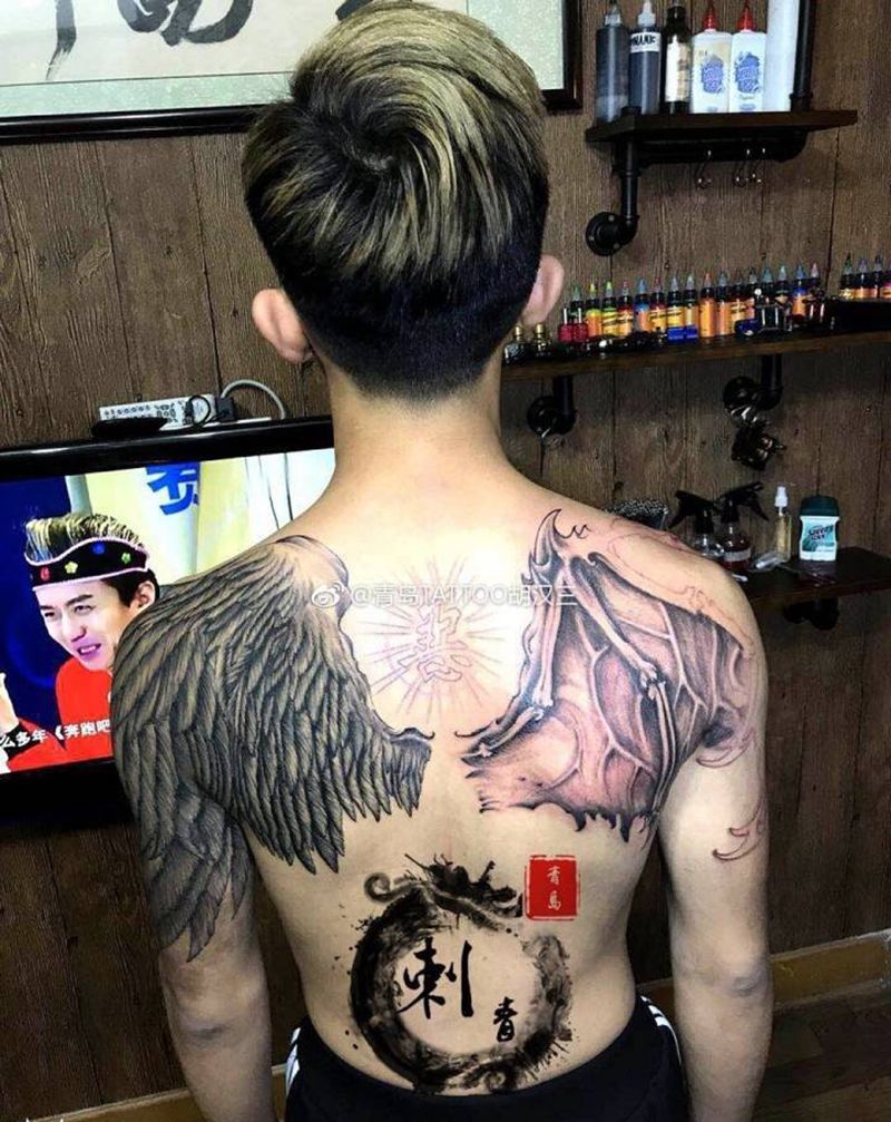 黑灰满背纹身图案