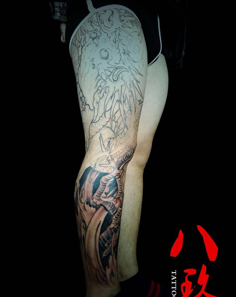 • T网红王老大花腿龙纹身图片_腿部新传统纹身图案
