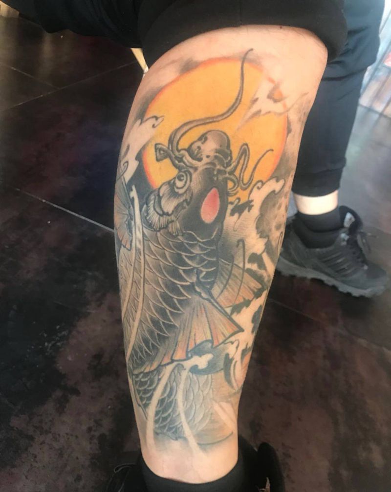 • T网红王老大花腿龙纹身图片_腿部新传统纹身图案