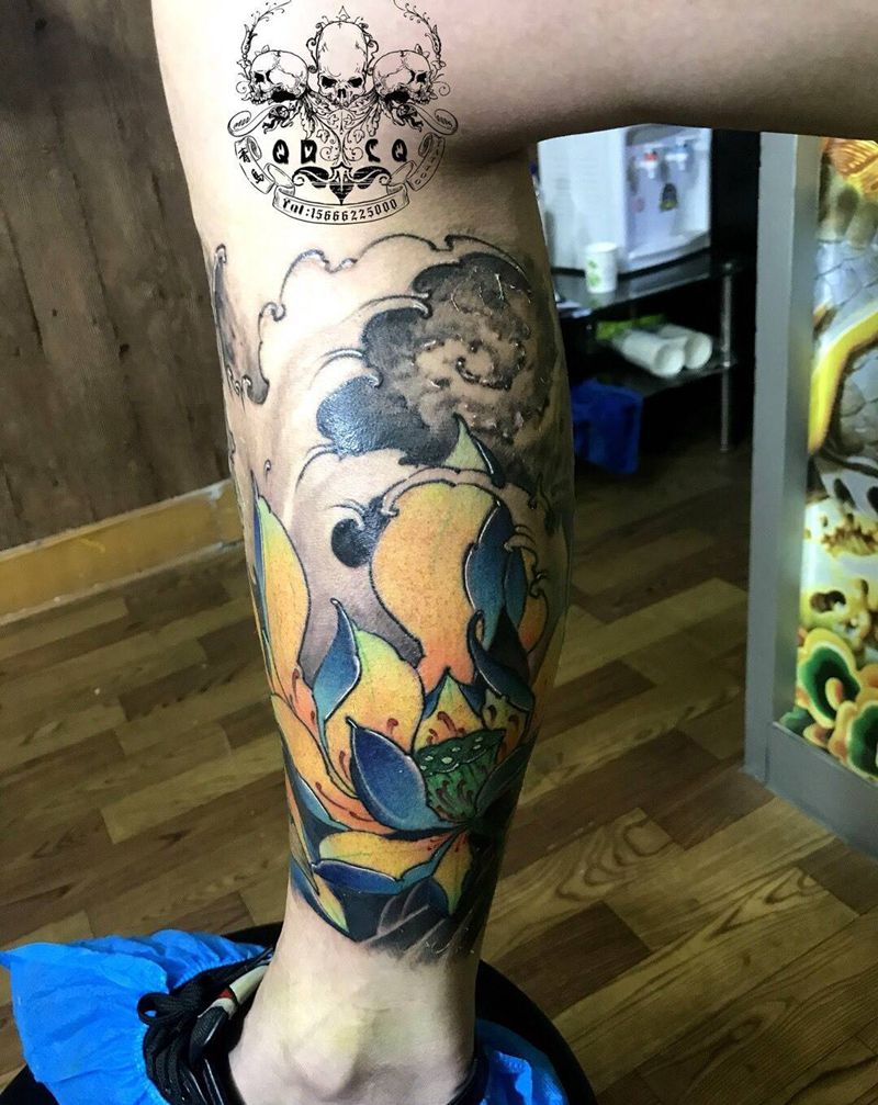 • T网红王老大花腿龙纹身图片_腿部新传统纹身图案