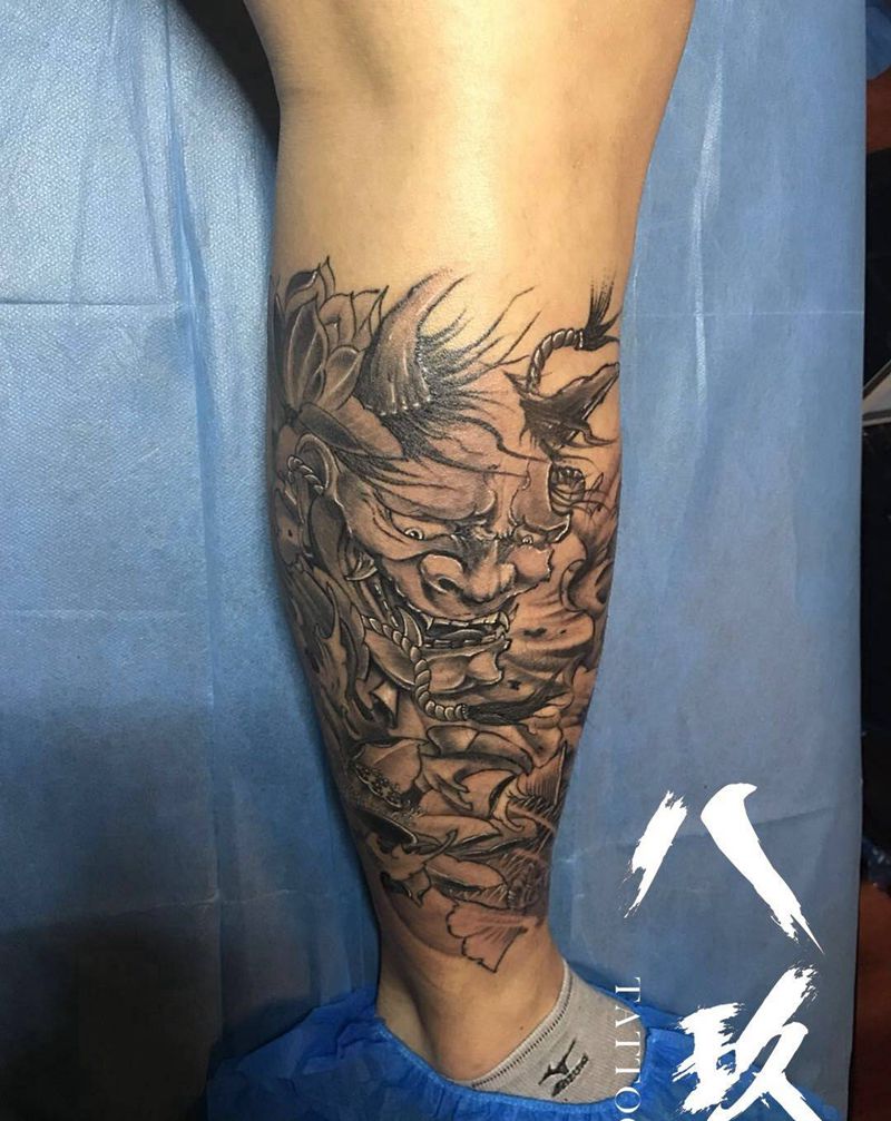 • T网红王老大花腿龙纹身图片_腿部新传统纹身图案