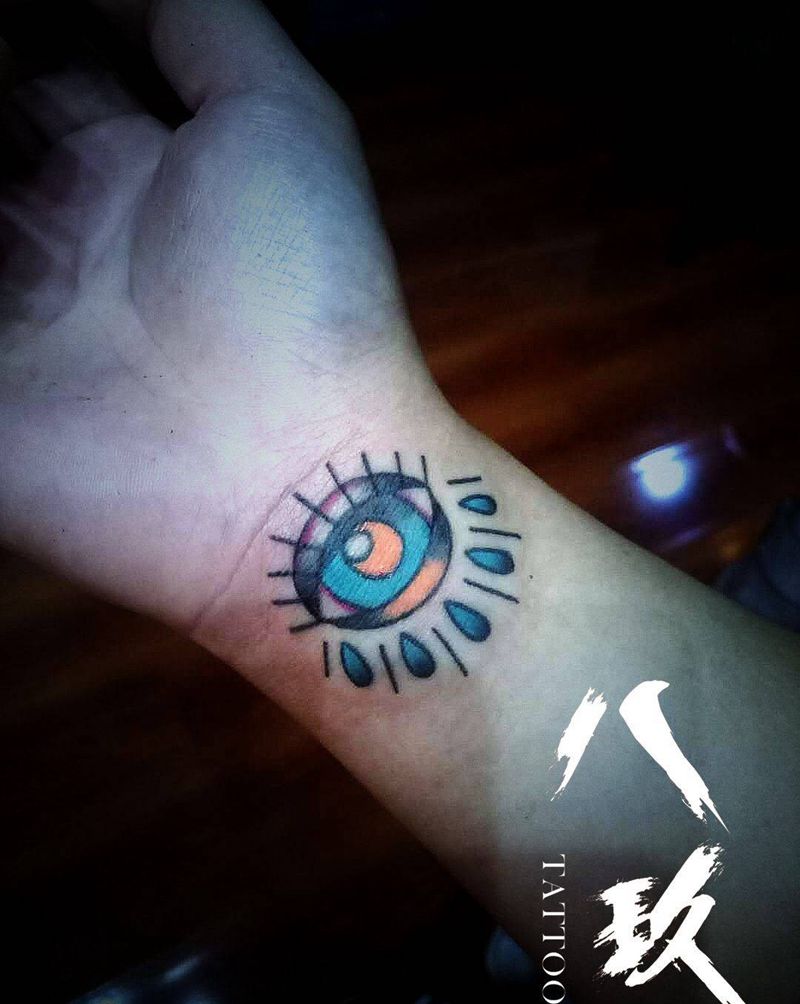 • 手背潮流时尚的玫瑰花眼睛纹身图案