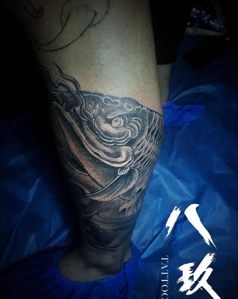 • T网红王老大花腿龙纹身图片_腿部新传统纹身图案