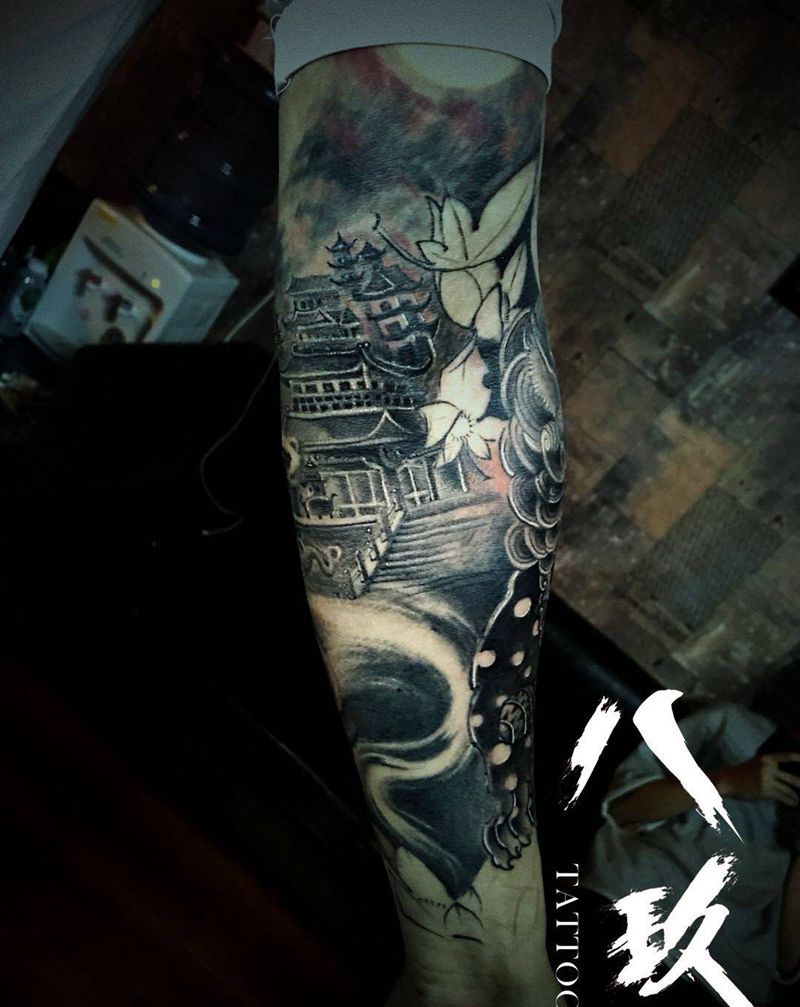 当前位置: 首页 >山东省青岛市纹身店-八玖刺青纹身图案>唐狮花臂未完待续纹身图片