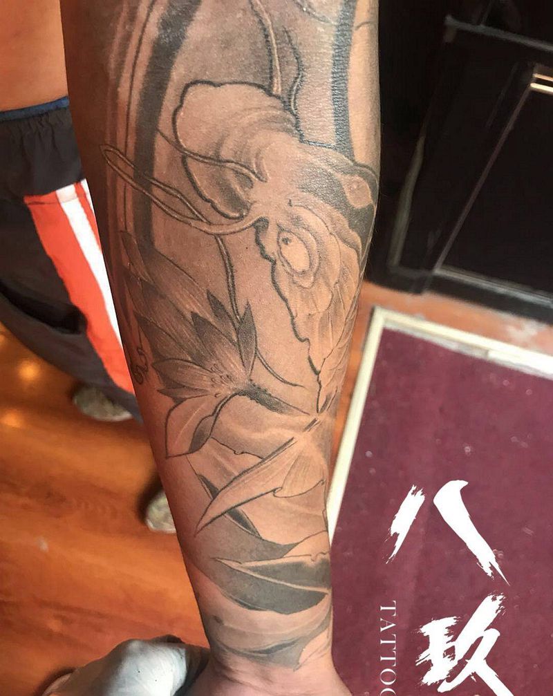 当前位置: 首页 >山东省青岛市纹身店-八玖刺青纹身图案>唐狮鲤鱼花臂纹身图片