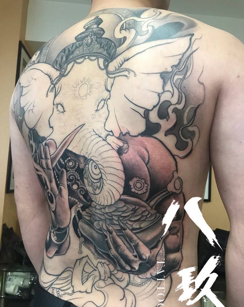 当前位置: 首页 >山东省青岛市纹身店-八玖刺青纹身图案>满背象神纹身图片