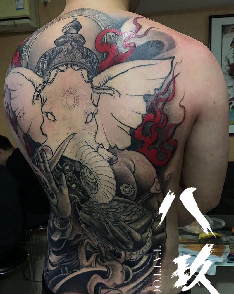 当前位置: 首页 >山东省青岛市纹身店-八玖刺青纹身图案>满背象神纹身图片