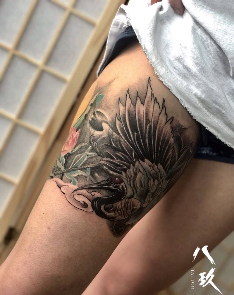 当前位置: 首页 >山东省青岛市纹身店-八玖刺青纹身图案>仙鹤遮盖纹身图片