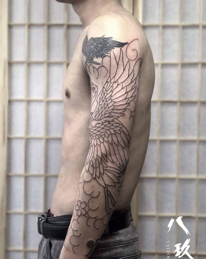 当前位置: 首页 >山东省青岛市纹身店-八玖刺青纹身图案>老传统仙鹤纹身图片