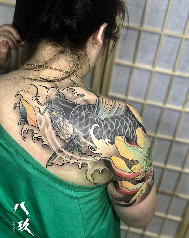 当前位置: 首页 >山东省青岛市纹身店-八玖刺青纹身图案>鲤鱼纹身图片_肩部背部新传统纹身图案