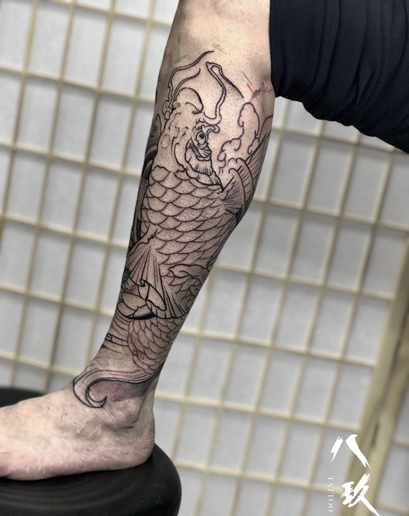 当前位置: 首页 >山东省青岛市纹身店-八玖刺青纹身图案>包小腿鲤鱼纹身图片_腿部新传统纹身图案