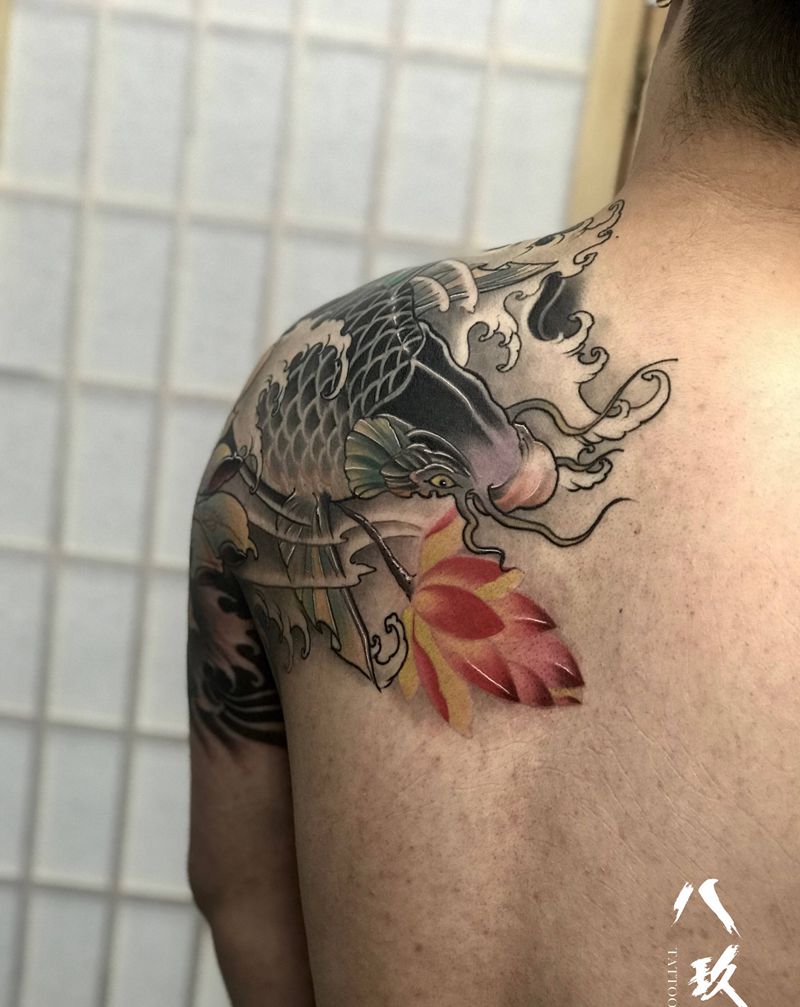 当前位置: 首页 >山东省青岛市纹身店-八玖刺青纹身图案>鲤鱼纹身图片_肩部新传统纹身图案