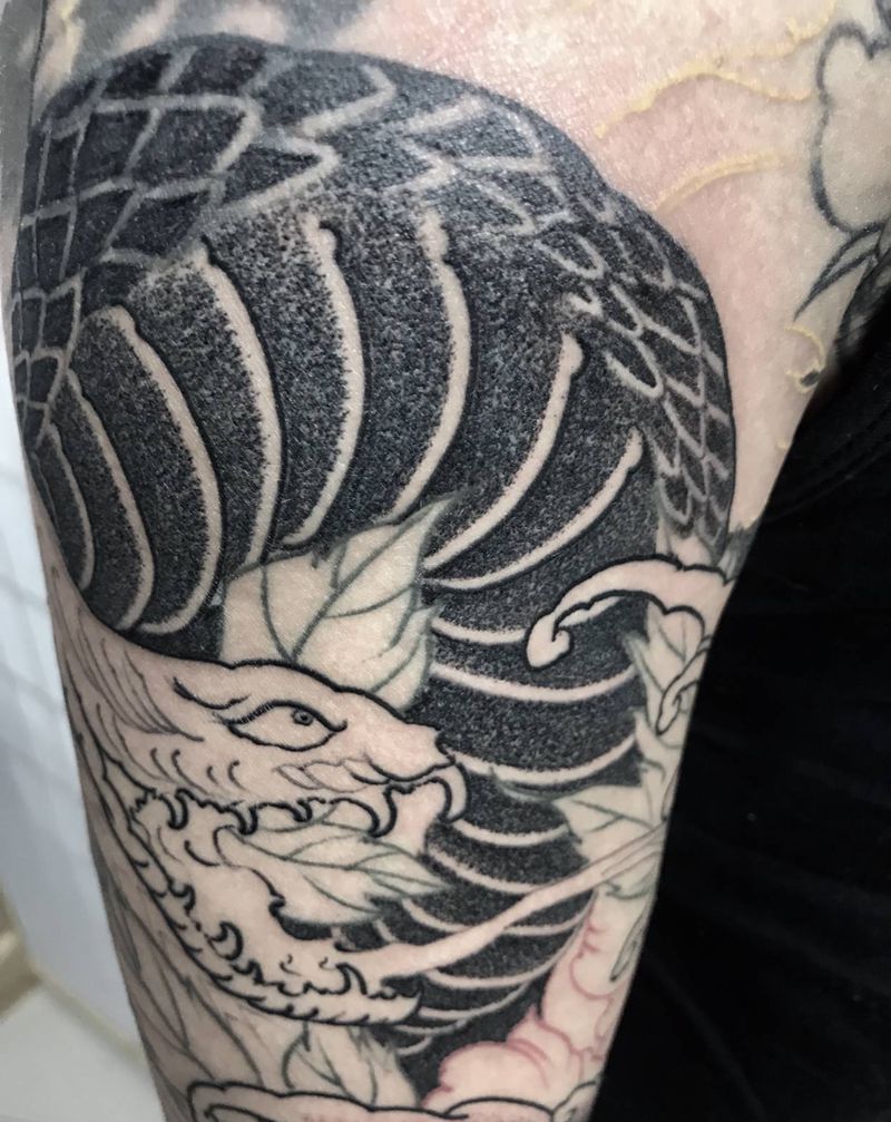 • T网红王老大花腿龙纹身图片_腿部新传统纹身图案