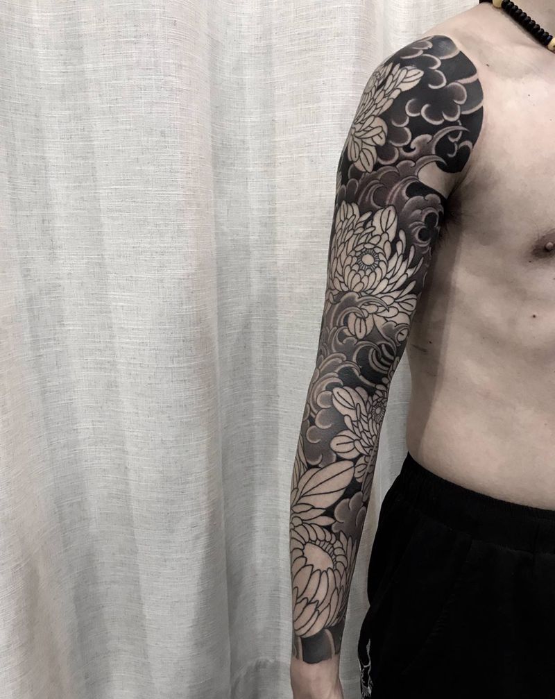 当前位置: 首页 >山东省青岛市纹身店-八玖刺青纹身图案>菊花臂纹身图片_老传统纹身图案