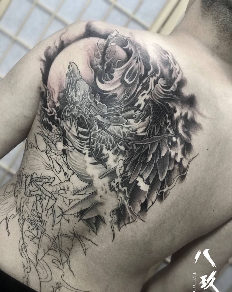 • 纹身吧推荐的披肩图腾半胛纹身图案作品展示