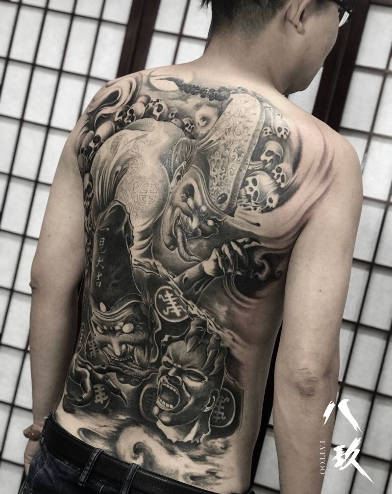 当前位置: 首页 >山东省青岛市纹身店-八玖刺青纹身图案>黑白无常纹身图片_背部纹身图案