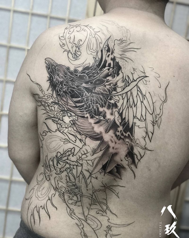 黑灰满背纹身图案
